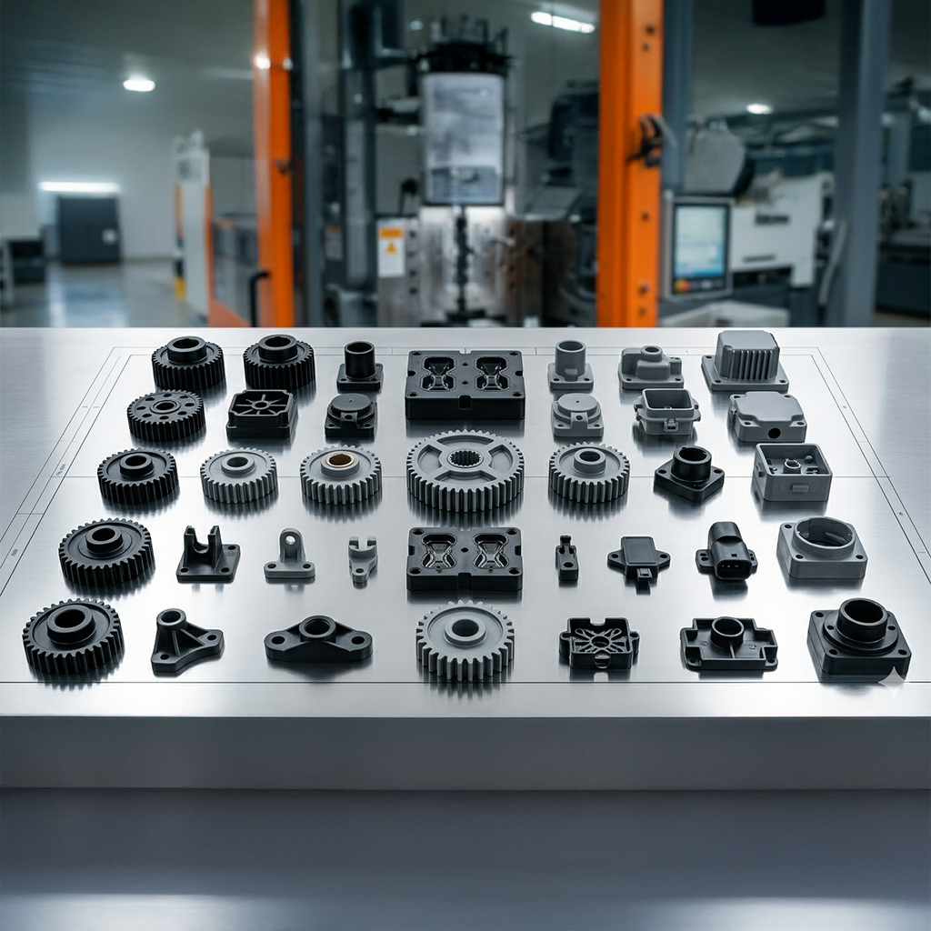 Polímeros Semicristalinos (Nylon, Delrin, PP): Destacan por su resistencia mecánica, química y al desgaste, aunque requieren un control térmico más estricto durante la inyección.